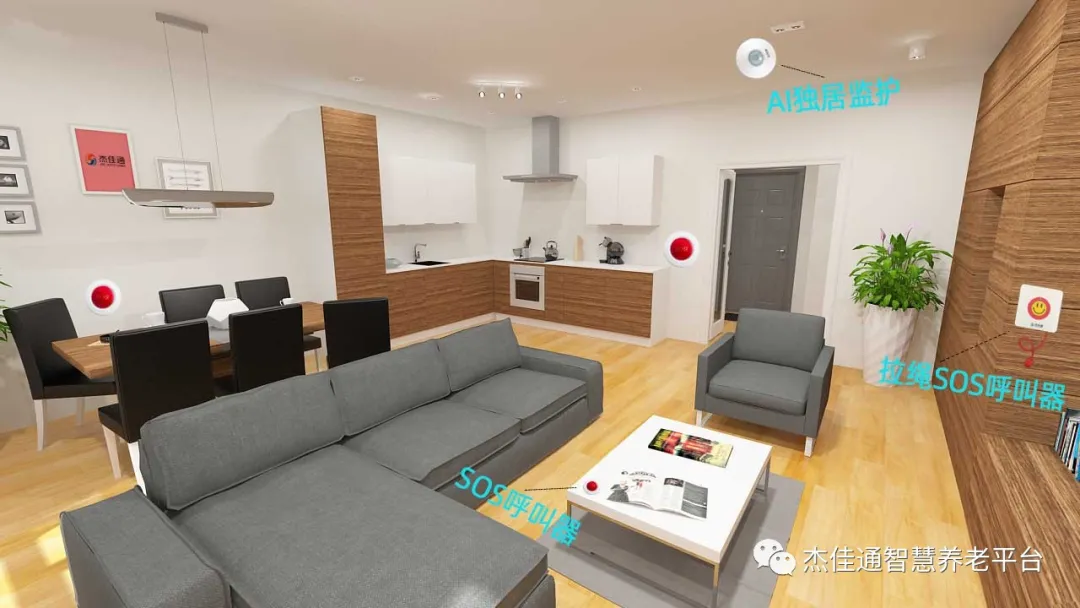 2、在老人經常活動區域安裝AI獨居監護感知設備,后臺大數據平臺通過人工智能分析,可以判斷老人的活動狀況,防止意外事故的發生。