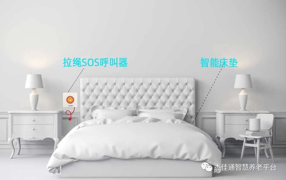 2、褥子或床墊下放一張智能床墊,可以實時監測老人的心率、呼吸、睡眠質量和離/入床時間,防止老人在睡覺時發生意外,若出現異常情況時,值班中心和老人子女手機上都會即時收到報警信息。
