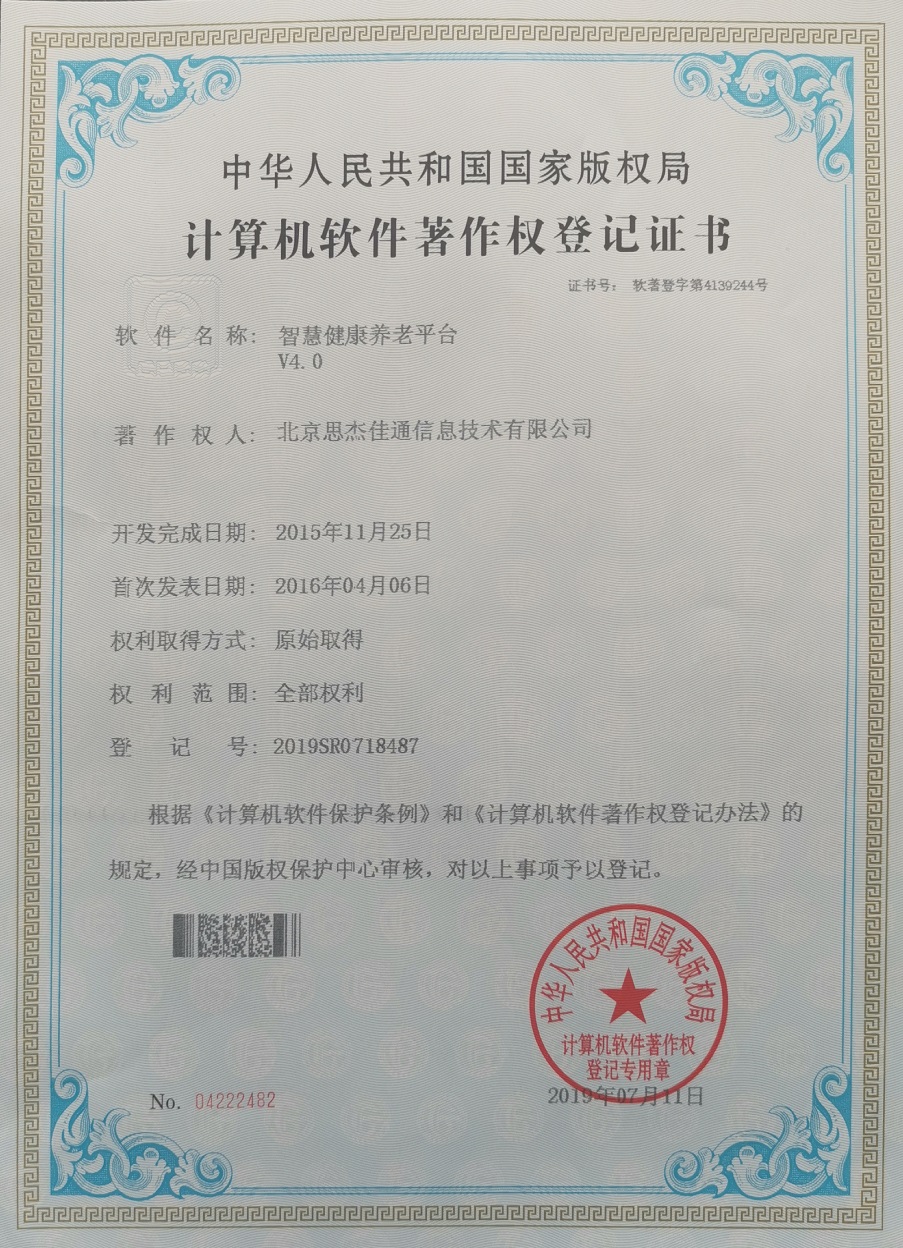 八、具有多項核心的養老平臺計算機軟件知識產權證書